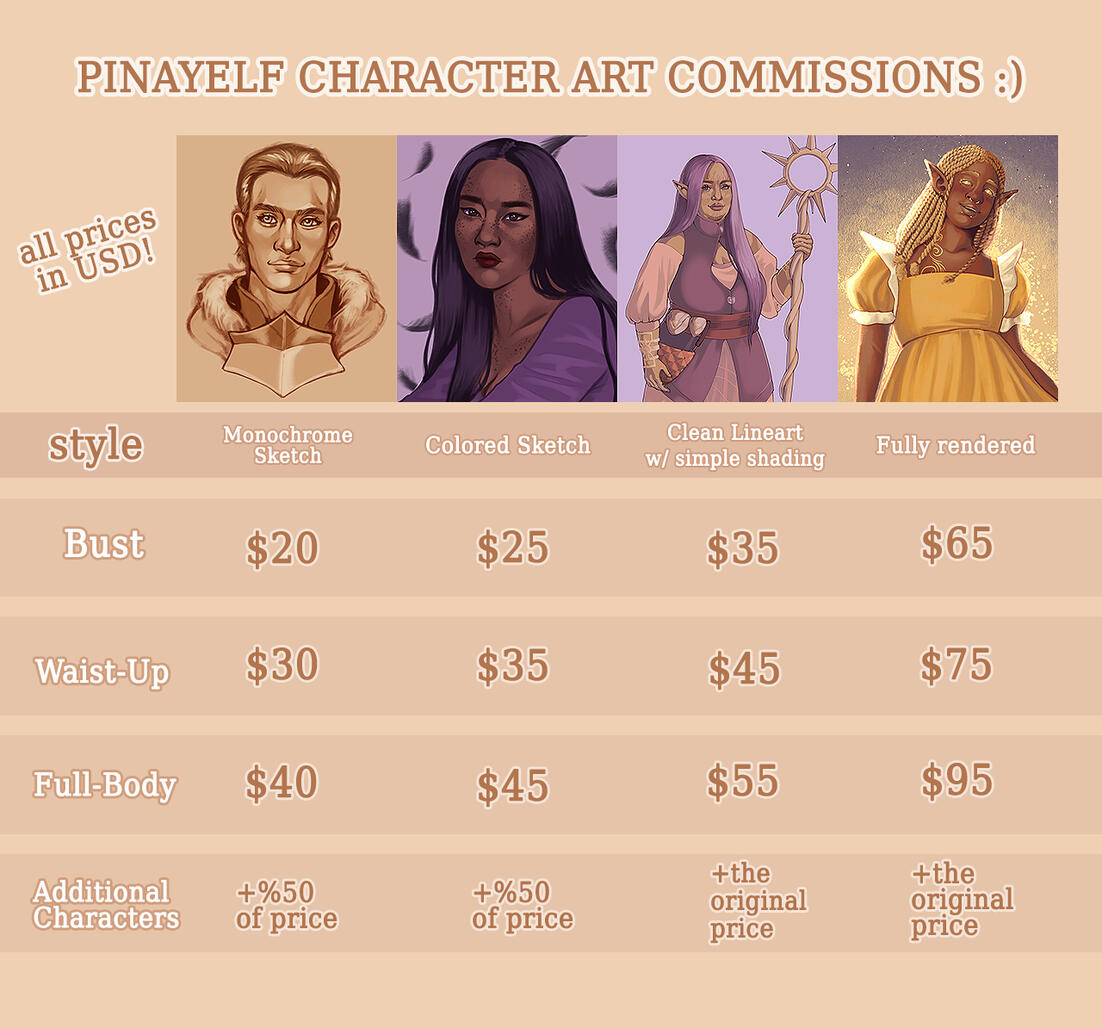 Select a style you want and send an e-mail to [email protected] with the subject "Commission" or contact me through Discord (add pinayelfart)