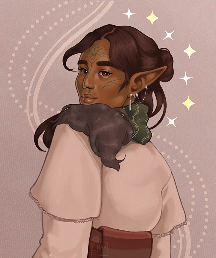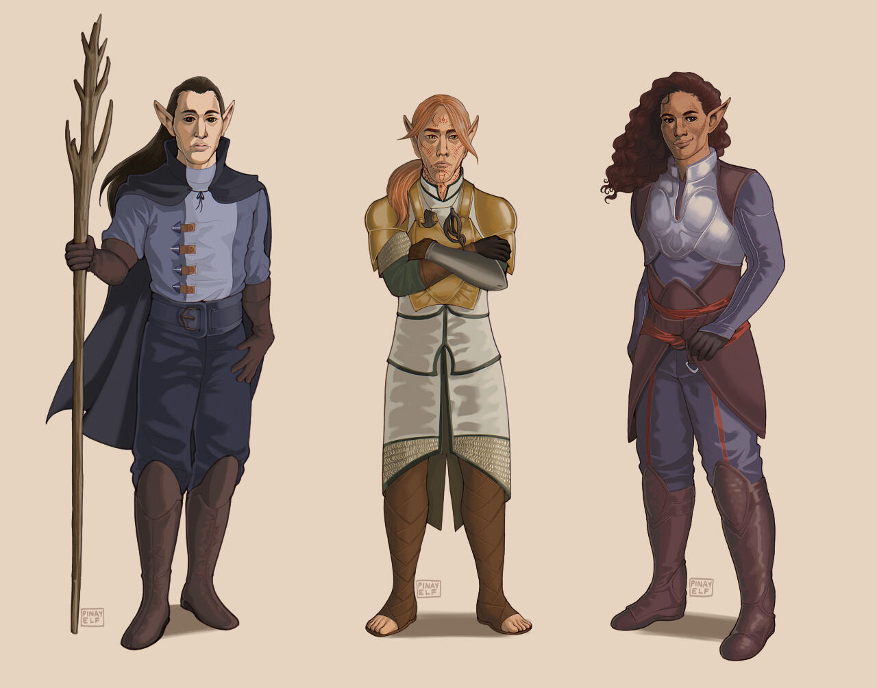 Extra details include: intricate armor, clothing, jewelry, hairstyles, props (ex: weapons, a book the character is holding)